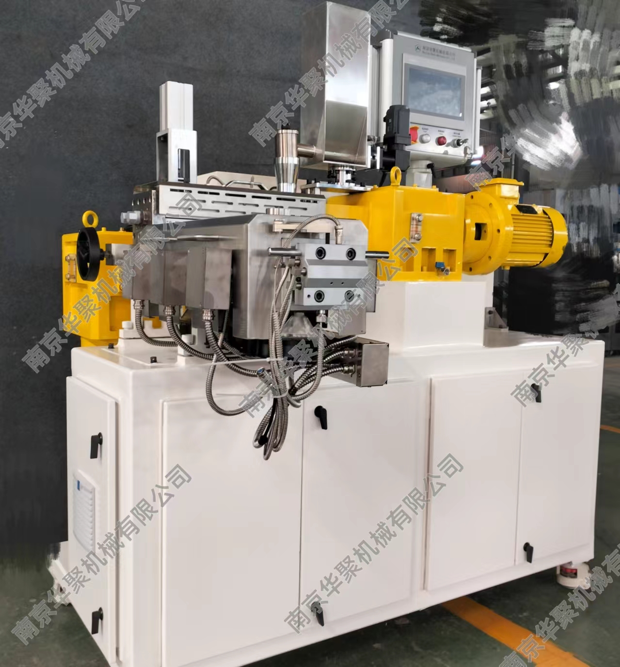 南京華聚機械有限公司致力于同向平行雙螺桿擠出機及連續(xù)密煉機的研發(fā)制造,在塑料改性、擠出發(fā)泡、高填充技術(shù)等相關(guān)領(lǐng)域擁有核心的技術(shù)和經(jīng)驗。關(guān)鍵零部件如:連續(xù)密煉轉(zhuǎn)子及腔體、高扭矩齒輪箱、側(cè)向加料裝置、特殊工藝加工段等等均為自主研發(fā)。作為給客戶提供全套專業(yè)解決方案的“智造”商,華聚能為客戶提供以連續(xù)密煉和雙螺桿擠出應(yīng)用為核心,結(jié)合高效能單螺桿各類擠出生產(chǎn)線的智能型成套裝備以及相關(guān)的工藝與工程領(lǐng)域技術(shù)開發(fā)、產(chǎn)品制造直至交鑰匙工程;